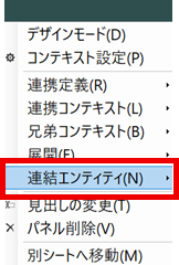 連結項目を配置しているパネルを右クリックし[連結エンティティ]→[連結先] からデータ型を変更したい連結元エンティティを選択します。