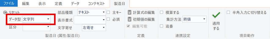 連結項目のデータ型が、設定した型に自動的に反映されていることを確認します。