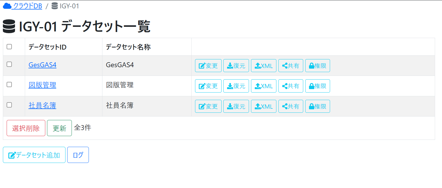 | [選択削除] | チェックしたデータセットを削除します。 |
