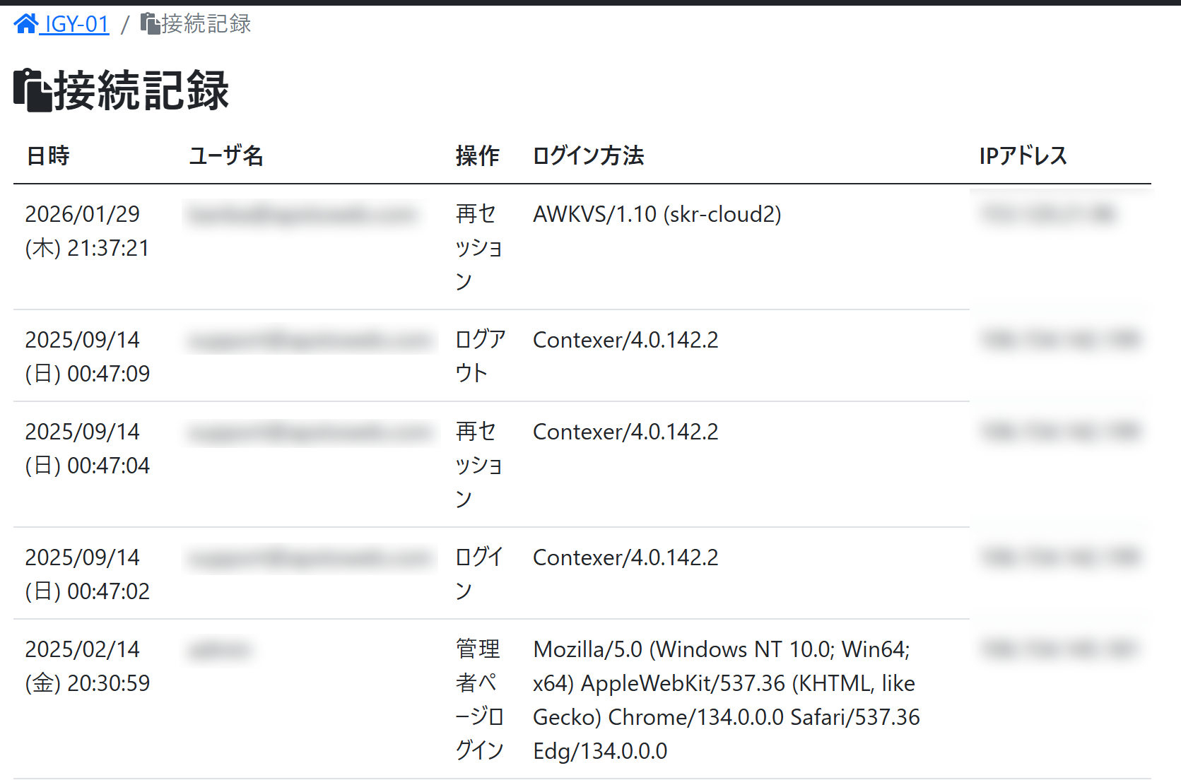 接続記録では、サイトにログインしたユーザのアクセス内容の記録を参照できます。